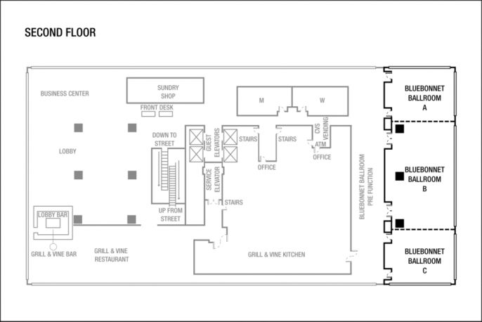 TECHSPO Fort Worth 2025 will be held in the Bluebonnet Ballroom on the Second Floor (refer to the floor plan below).